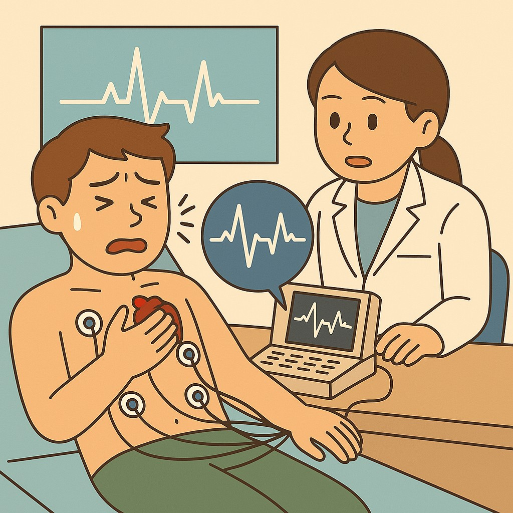 - 심전도(ECG): 가장 기본적인 검사로 심장의 전기적 활동을 확인