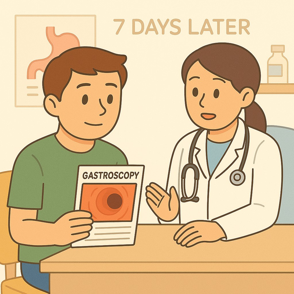 - 검사 후 유의사항 확인: 수면내시경 후 운전은 금지, 자극적인 음식도 피해주세요.