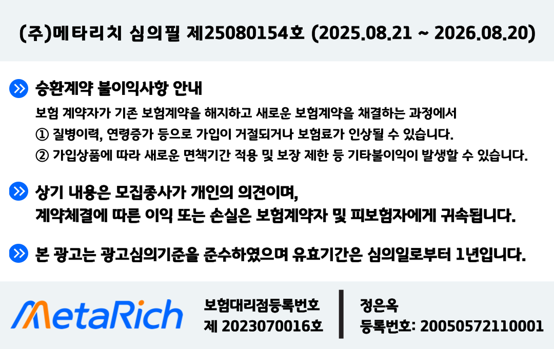 - 실속 있는 선택 : 단순히 저렴함이 아닌 본인 생활 패턴과 건강 상태에 맞는 실속형 보장이 핵심이에요.