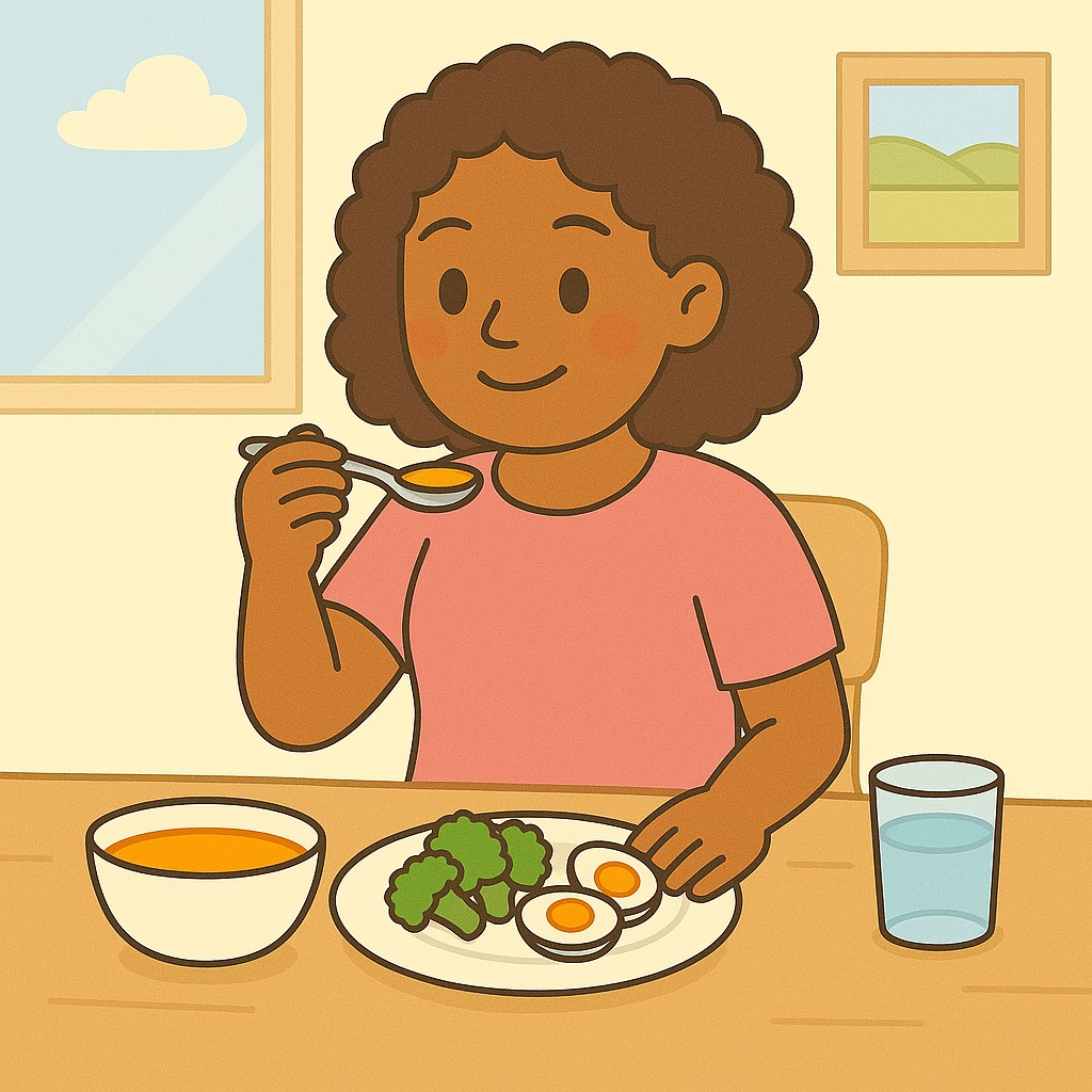 - 점심: 단호박 수프 / 찐 브로콜리 / 삶은 달걀