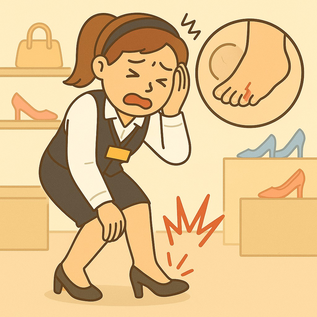 - 부적절한 신발 착용 – 발볼이 좁은 구두, 쿠션 없는 슬리퍼 등
