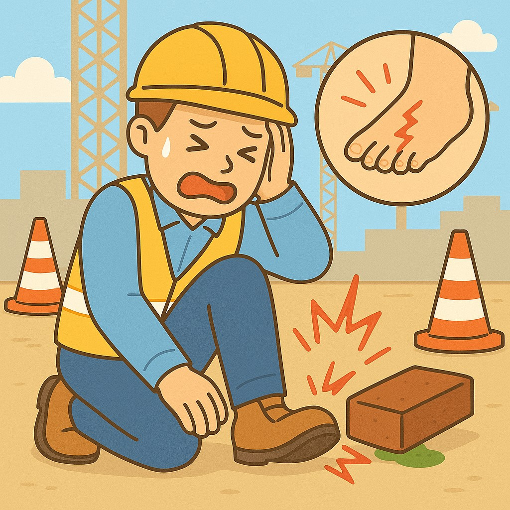 - 무거운 물건이 발 위로 떨어졌을 때 – 흔히 가정이나 공사현장에서 발생