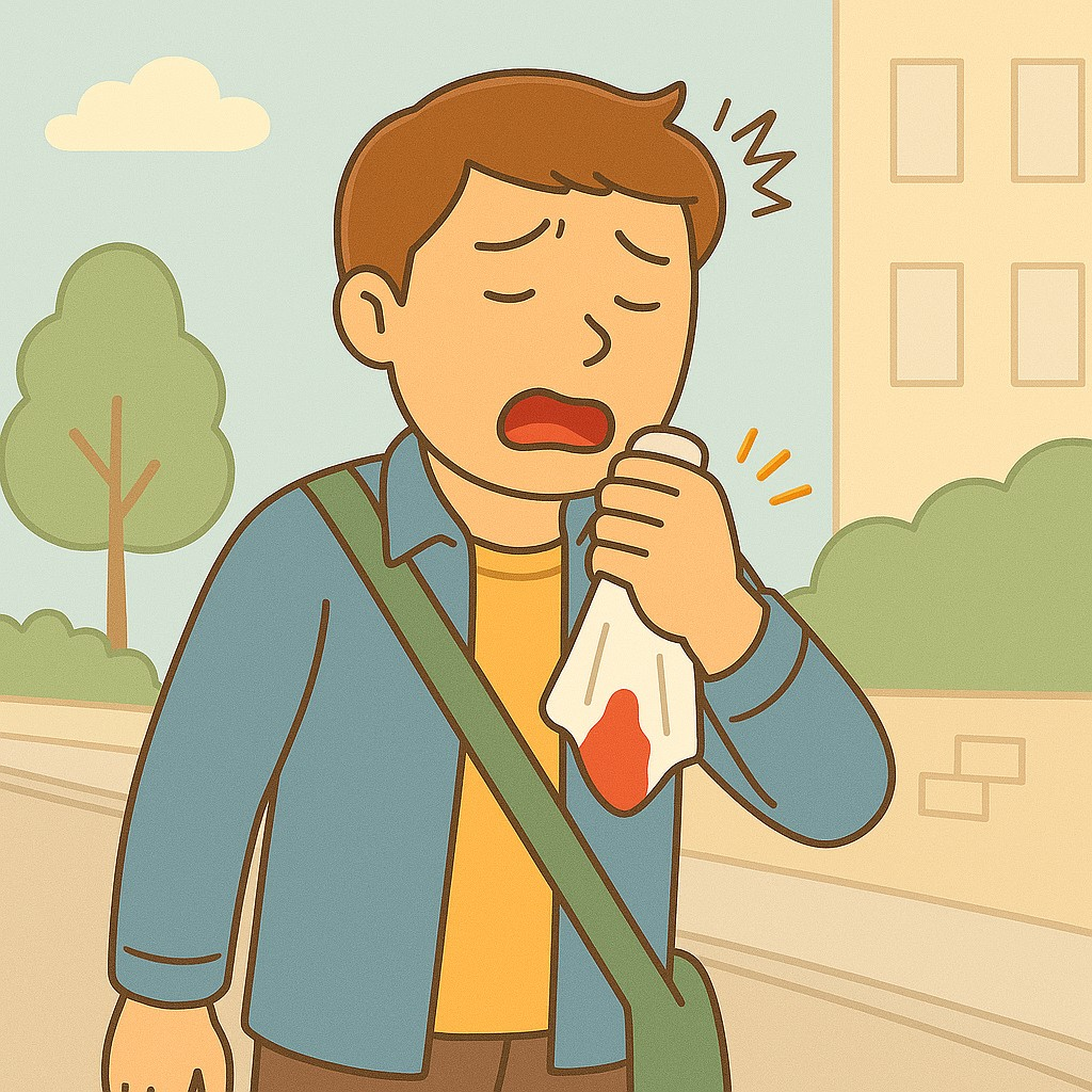 폐 내부의 혈관이 손상되면 혈담이 생겨요. 피 섞인 가래는 절대 무시해서는 안 되는 위험 신호예요. - 3. 숨쉬기가 힘들고 호흡이 가빠져요