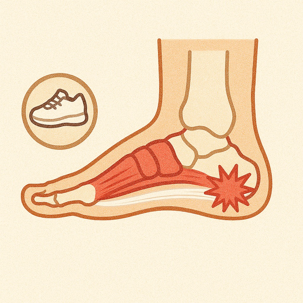 족저근막염은 발바닥에 있는 두꺼운 섬유띠인 족저근막에 염증이 생겨 통증을 유발하는 질환입니다. 주로 발뒤꿈치 또는 발바닥 중앙에서 통증이 시작되며, 아침에 일어나 첫 발을 내디딜 때나 오래 걷거나 서 있을 때 심해지는 것이 특징입니다. 중년층이나 장시간 서서 일하는 직업군, 또는 달리기와 같은 운동을 자주 하는 사람들에게 흔히 나타납니다.