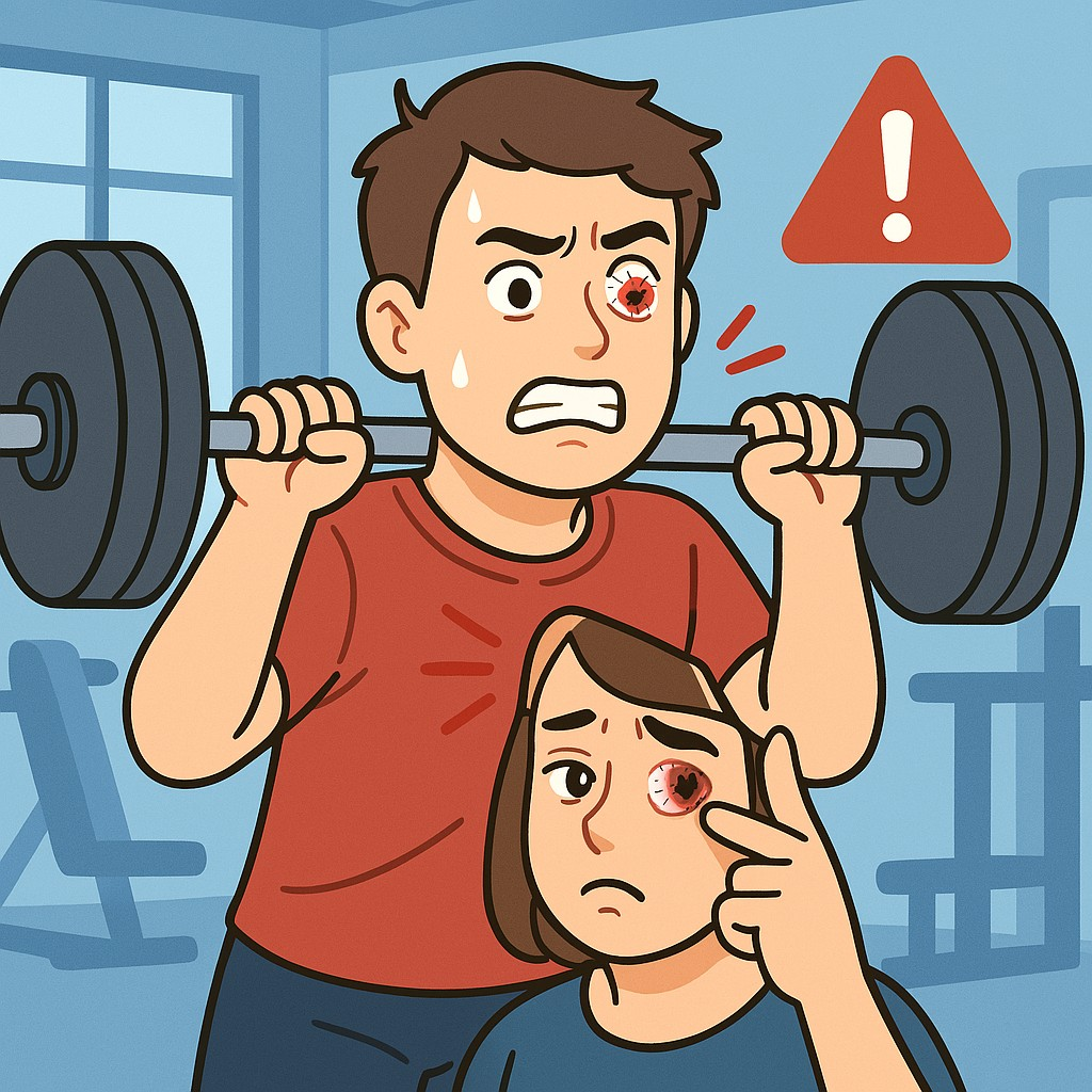 - 격한 운동이나 체중 들기: 헬스장에서 무거운 중량을 드는 동안 복압 상승으로 인해 눈 혈관이 터질 수 있습니다.
