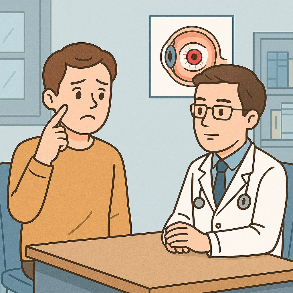 - 시진 및 문진: 눈을 관찰하고, 최근 외상이나 기침, 약 복용 여부, 고혈압 여부 등을 확인합니다.