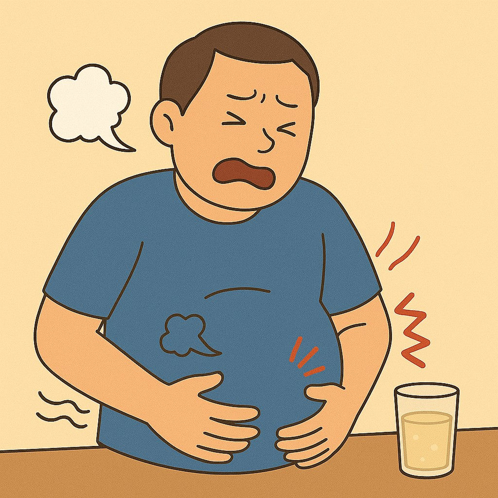 - 복부 팽만감: 장내 가스가 차며 배가 빵빵하게 불편한 느낌이 듭니다.