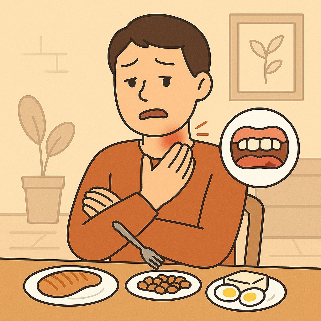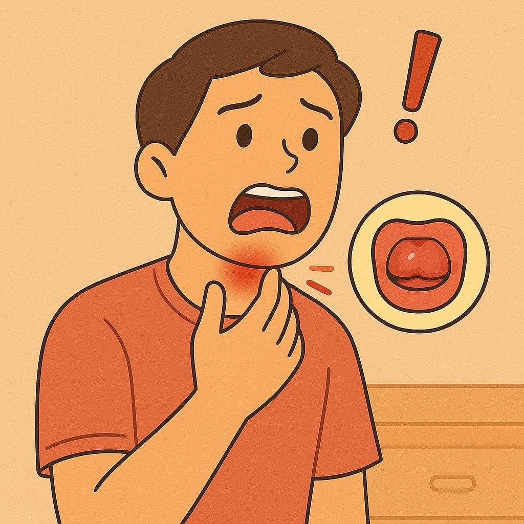 - 알레르기 반응: 음식 알레르기(특히 땅콩, 갑각류), 약물 반응으로 목젖이 갑자기 부을 수 있습니다.