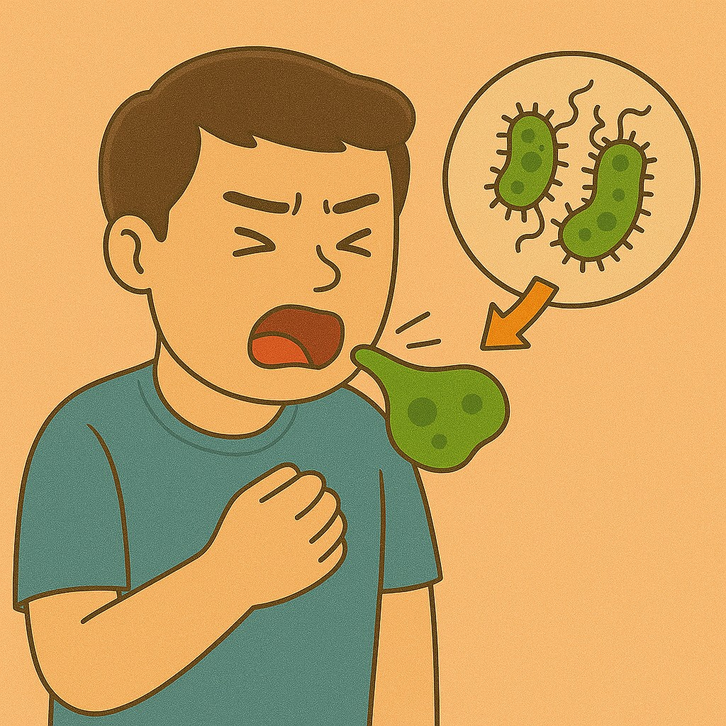 초록 가래는 면역세포가 세균과 싸운 후 남은 부산물로, 농(고름)의 일종입니다. 따라서 단순한 감기나 알레르기에서 나타나는 맑은 가래와는 성격이 다릅니다. 색이 짙고, 점도가 높으며, 양이 많다면 세균성 감염이 진행 중인 상태일 수 있어요.